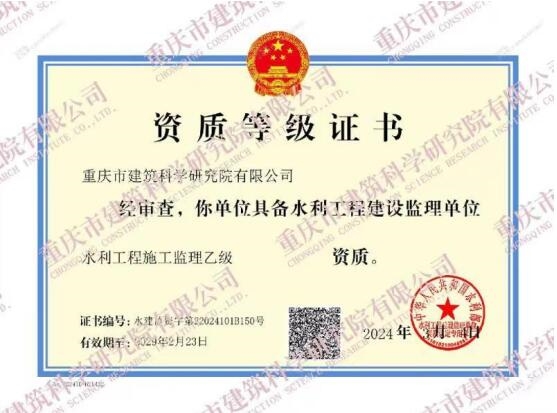 近日,經(jīng)國水利部核準(zhǔn),重慶設(shè)計(jì)集團(tuán)所屬子企業(yè)重慶市建筑科學(xué)研究院有限公司申請(qǐng)水利部水利工程施工監(jiān)理乙級(jí)資質(zhì)成功獲批。