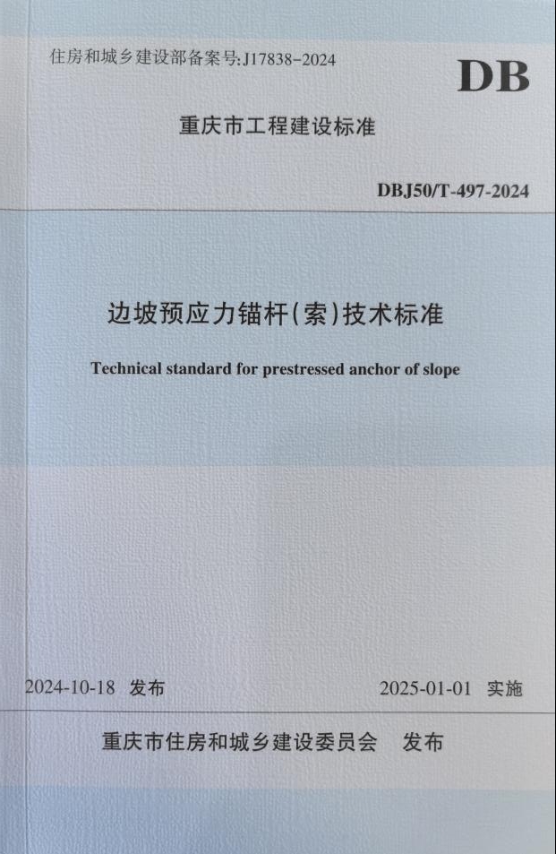 作為主編單位,在標(biāo)準(zhǔn)編制過程中,市建科院調(diào)查總結(jié)了近年來重慶市在邊坡預(yù)應(yīng)力錨桿(索)設(shè)計、施工、檢測、監(jiān)測及質(zhì)量驗(yàn)收的工程經(jīng)驗(yàn),參考了國內(nèi)有關(guān)技術(shù)標(biāo)準(zhǔn),吸收了國內(nèi)外相關(guān)科技成果,開展了多項(xiàng)專題研究,并在重慶市范圍內(nèi)廣泛征求了有關(guān)單位的意見,經(jīng)反復(fù)討論、修改、充實(shí),最后經(jīng)審查定稿。標(biāo)準(zhǔn)的正式施行,是對公司在邊坡預(yù)應(yīng)力錨桿(索)方面技術(shù)實(shí)力的肯定,彰顯了公司在該領(lǐng)域中的技術(shù)引領(lǐng)地位,對提升邊坡預(yù)應(yīng)力錨桿(索)技術(shù)水平影響力方面具有重要意義。