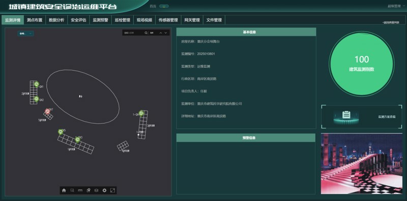 春晚重慶分會場臨時(shí)搭建舞臺位于南岸區(qū)南濱路彈子石廣場,此次評估工作范圍覆蓋了春晚分會場舞臺臨時(shí)搭建結(jié)構(gòu)的各個(gè)環(huán)節(jié)。市建科院評估小組首先對舞臺整體結(jié)構(gòu)進(jìn)行了細(xì)致勘察,借助專業(yè)檢測設(shè)備對舞臺的承重能力、支撐結(jié)構(gòu)的穩(wěn)固性等關(guān)鍵指標(biāo)進(jìn)行了精準(zhǔn)測量、計(jì)算分析,開展舞臺基座荷載試驗(yàn),并在舞臺燈光架體上設(shè)置自動(dòng)化監(jiān)測設(shè)備,在滿足每平米承重300公斤以上需求的同時(shí)保障了燈光架體的安全。評估小組還與春晚分會場工作人員進(jìn)行充分溝通交流,詳細(xì)了解日常工作中遇到的安全問題以及應(yīng)對措施,對于潛在安全隱患提出整改意見建議,進(jìn)一步加強(qiáng)安全管理工作,確保春晚分會場運(yùn)行安全、穩(wěn)定、有序。